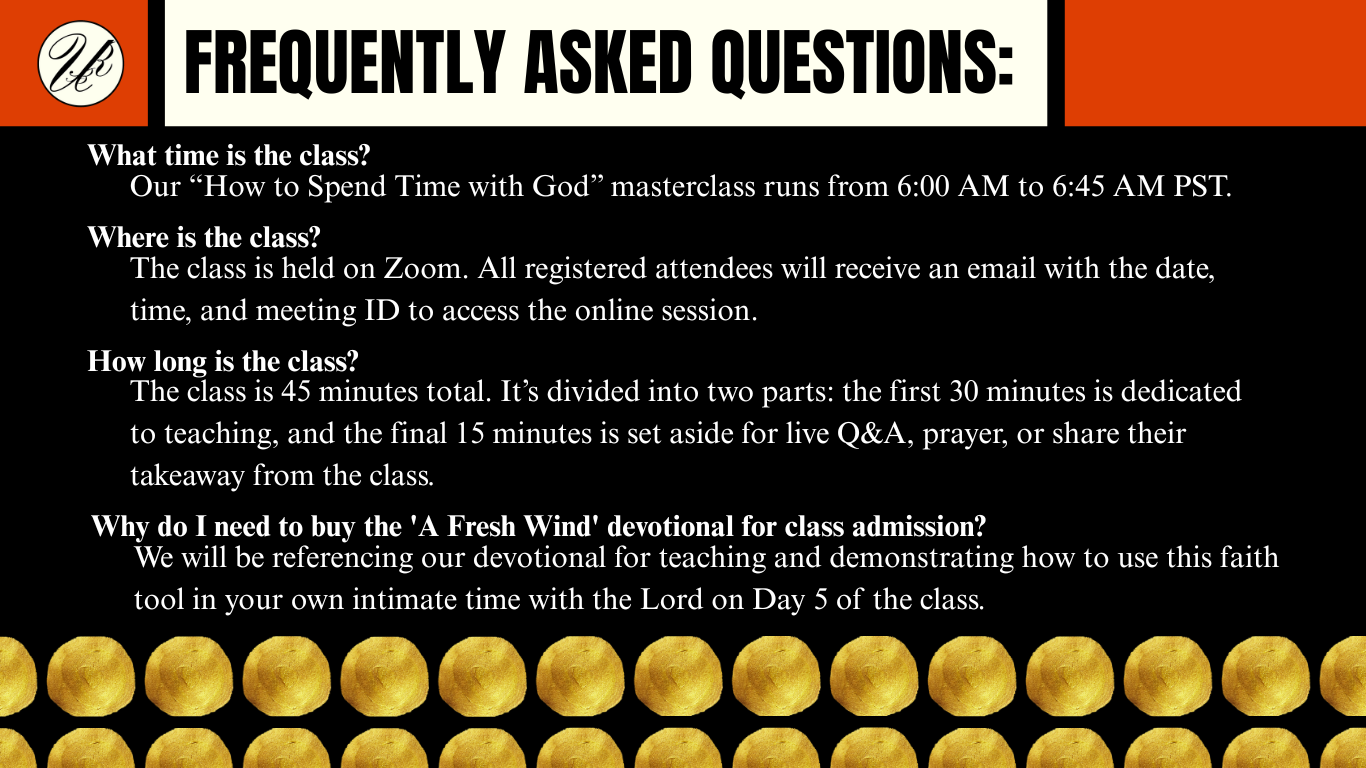 I am ready to attend the Master Class on How to Spend Time with God in the AM